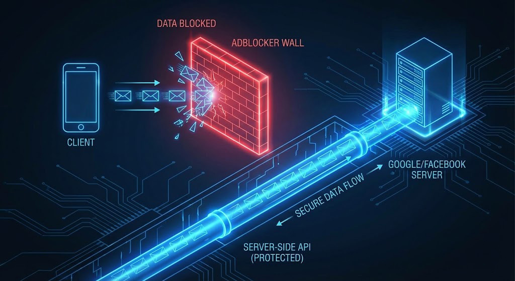 Nu putem repara comportamentul uman, dar putem repara tehnologia. Dacă te bazezi doar pe Pixelul din browser (Client-Side), pierzi date. Soluția modernă este Server-Side Tracking.